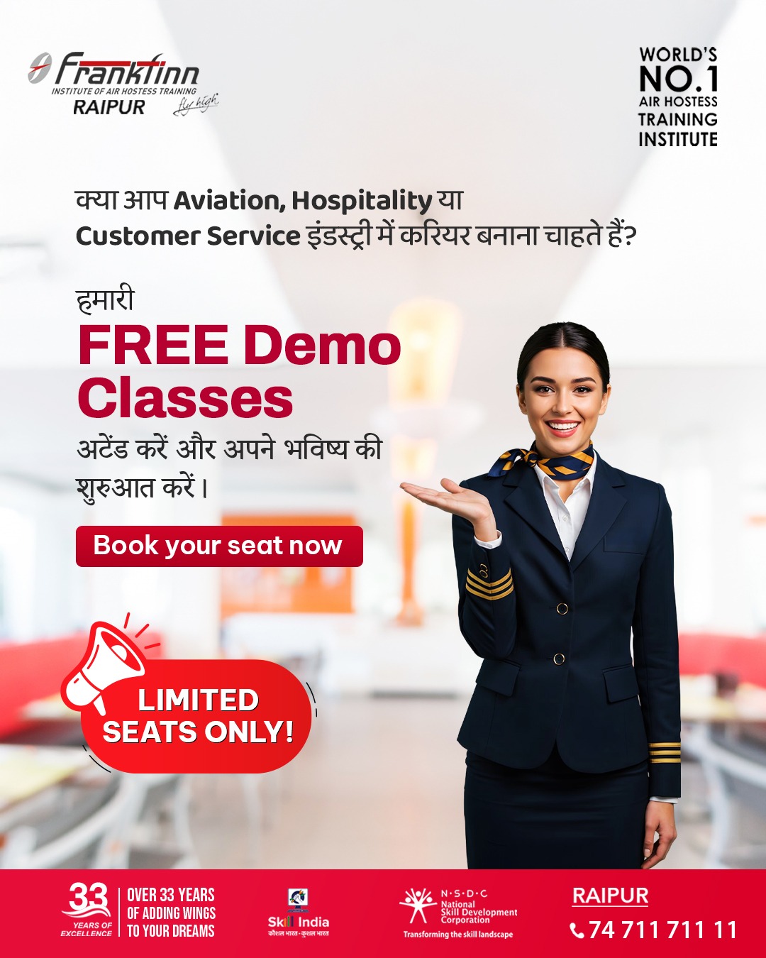 I had a wonderful experience with Frankfinn Institute of Airhostess Training, Raipur. The institute truly lives up to its reputation of being the best in aviation, hospitality, travel, and customer service training. The faculty members are extremely professional, supportive, and always encourage students to bring out the best in themselves